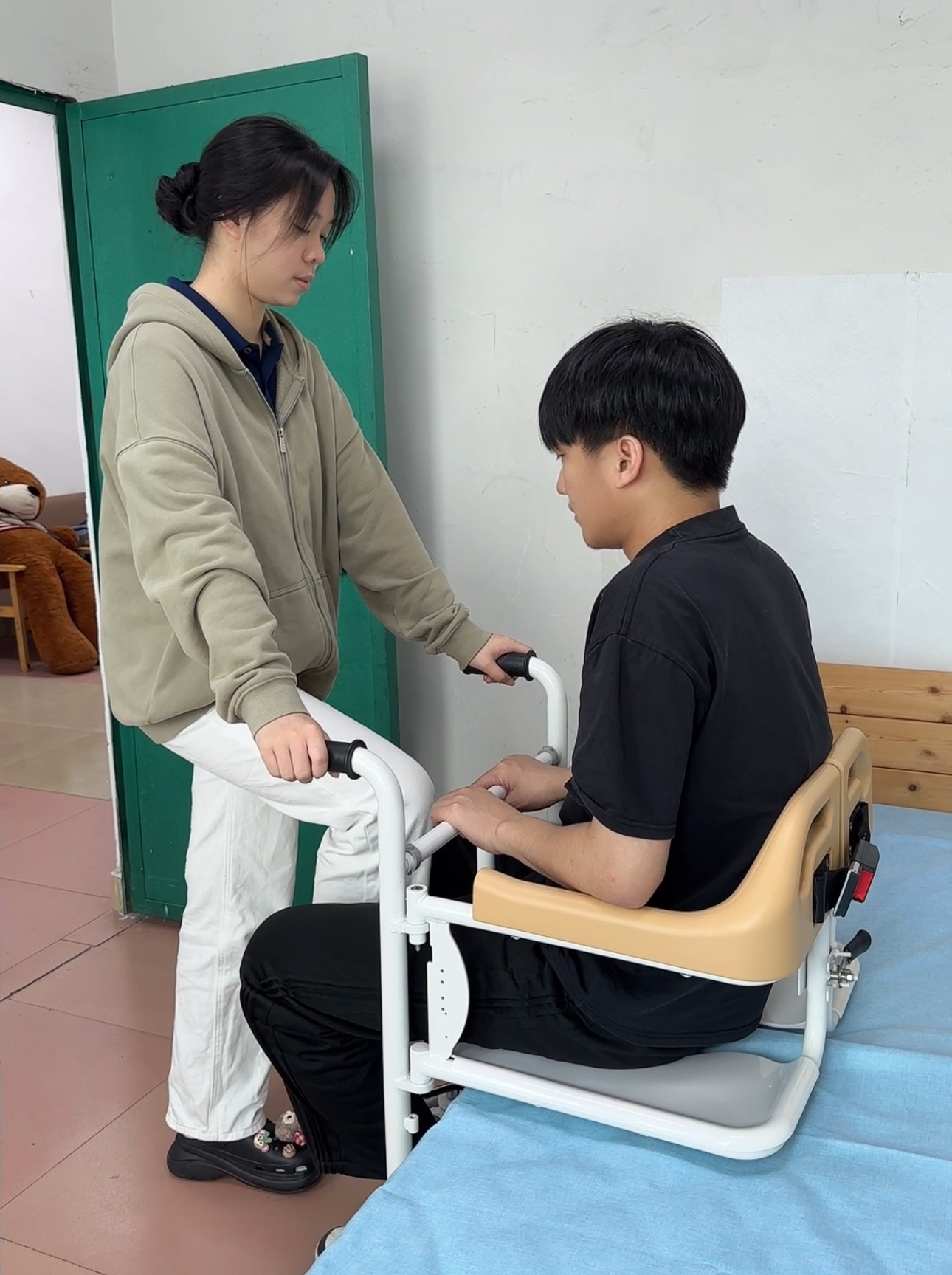 护理人员只需轻拉侧边把手,即可轻松帮助卧床者完成起背、翻身或抬腿等动作。这不仅减轻了护理者的体力负担,更让被护理者感受到动作的平稳与舒适。垫料兼具隔尿防渗功能,无论是夜间安睡还是日常护理,都能保持床褥干爽,让“长期垫睡”成为可能。